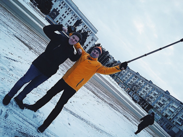 8.30. После завтрака умываемся, одеваемся как можно теплее и собираем оборудование: штатив, камера, микрофон, свет, средство перегона под названием «Дежеро», с помощью которого можно отправлять видеозаписи в Москву и выходить в прямой эфир. Теперь пора ехать в центр города. Благо, до него от нашего дома недалеко.
