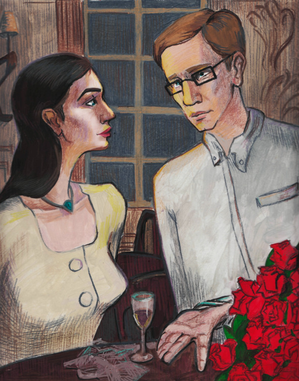 В Аптекарском зале знаменитого московского ресторана «Кафе Пушкин» для великолепных роз Нестерову предложили огромную, хрустальную вазу, по форме напоминающую гигантскую фиалку. Цветы опустили в нее, и ваза украсила маленький столик возле основного, обеденного стола, накрытого кипельно-белой скатертью.