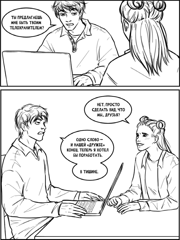 Костров медленно поворачивает ко мне голову, щурится и смотрит пару секунд прямо в глаза. Что? Моя просьба такая неловкая? Он переводит взгляд на Егора, растянувшегося за партой, будто на шезлонге. Тот не пишет лекцию, вообще не слушает. Он достал телефон: быстро что-то листает, и иногда на лице проскальзывает усмешка.