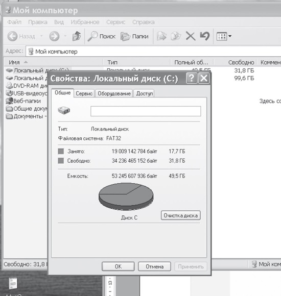 5. Видно, что места на моём диске осталось меньше, чем на четверть. Возможно, что это и является причиной медленной работы.