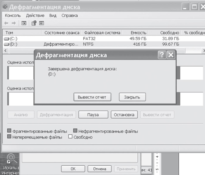 А вот диск D мы можем, если никого нет поблизости более сведущего в этих вопросах, дефрагментировать, упорядочить, попросту говоря, сами.