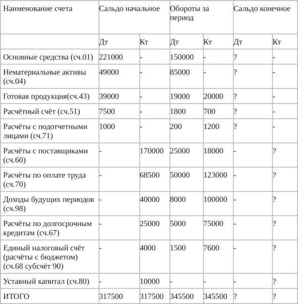 Конечное сальдо активного счета будет по дебету или равно нулю, конечное сальдо пассивного счета будет по кредиту или равно нулю. Ответы в приложении 2.