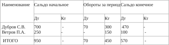 Оборотная ведомость по счетам аналитического учёта расчетов с подотчётными лицами (счёт 71).