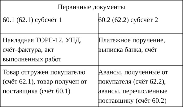 Использование субсчетов 1 и 2 у счетов 60 и 62