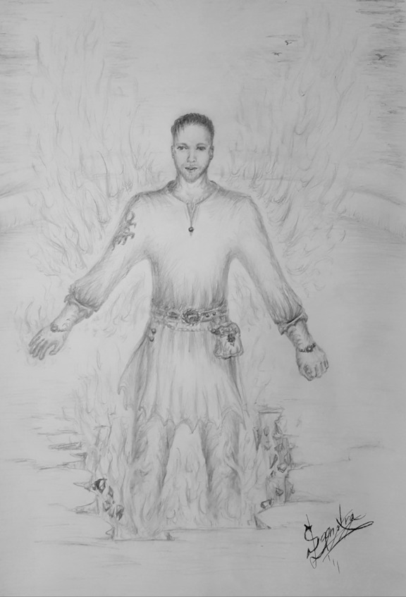 – Я честно хотел быть добрым, – произнёс жрец, – но ты надоел не только мне! – парень тоже что-то начертал и направил жестом на недруга.