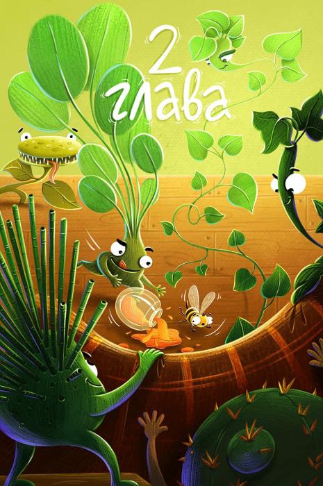 Неизвестно, чем бы закончилась эта ссора. Может быть, даже дракой! И кто знает, возможно, зелёные хулиганы оборвали бы друг с друга все листья и перебили бы все горшки. Но к счастью, наступил вечер, и домой вернулся наш Юра! Он был в новых очках и в прекрасном настроении. И нисколько не сердился на своих питомцев за их ужасные проделки этой ночью. Правда ведь, идеальный хозяин? Он поздоровался и с кактусом Кириллом, и с лимоном Филимоном, и погладил Вениамина и Валентина по их листикам. Он полил их всех до одного и побрызгал тёплой водичкой. Потом быстро поужинал пирогом с капустой из семейства крестоцветных, сполоснул тарелку, закатал дырявые рукава зелёной рубашки, набрал в ведёрко тёплой воды и принялся протирать от пыли зелёные листья Розалии Львовны. Юра напевал весёлую песенку, а Розалия Львовна сияла от счастья. Никогда она не чувствовала себя такой счастливой. Это был чудесный вечер, и никто не замечал, как на подоконнике злобно прищурил свои маленькие глазки кактус Кирилл. В его колючей голове носились самые коварные мысли, а иголки с каждой минутой становились только острее. Он догадывался, что жизнь цветочной мафии уже не будет прежней, потому что с этого дня все растения разделились на два лагеря… Кто же поддержит его, а кто станет защищать ботаника Юру? Кактус Кирилл втайне боялся, что у него появятся достойные соперники, и, как знать, вдруг они тоже смогут придумывать свои коварные планы. Но и ему, и нам с вами обо всём этом только предстоит узнать!