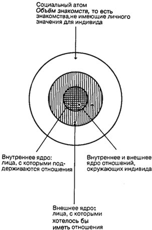 Как только я испытываю желание вступить в деловые, любовные или иные отношения с человеком, который до сих пор был просто знакомым, этот человек переступает порог моего социального атома; в мой социальный атом входят также люди, которые хотят вступить в отношения со мной. Эти желаемые отношения образуют внешнее ядро вокруг внутреннего ядра отношений, которые тоже раньше были только желаемыми, но все же стали реальными (90).
