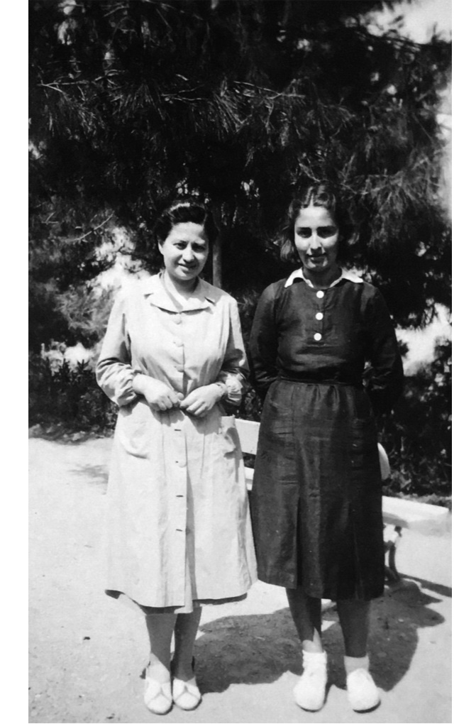 Tarih öğretmeni Saadet Berkol’la İzmir Kız Lisesi bahçesinde (1939)
