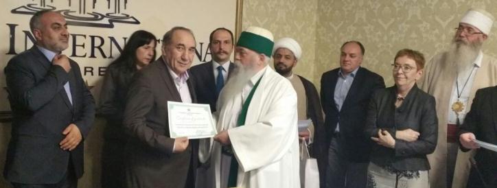 Şək. 3 Edmond Brahimay (İbrahim) – Mondi Baba Əli Şamilə qatılım bəlgəsi təqdim edərkən