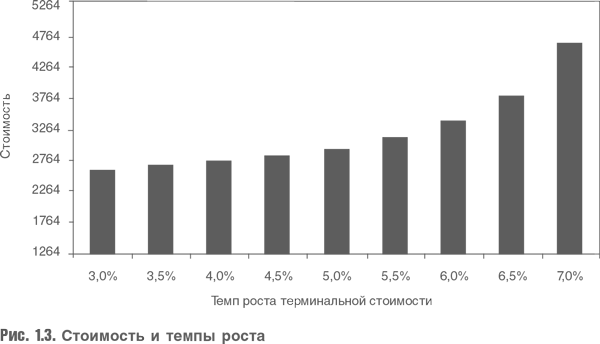 Вернемся к компании «Постоянный рост К°» и изменим темп роста, учитываемый при расчете терминальной стоимости (рис. 1.3).