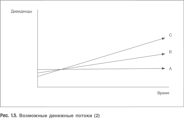 Но реальность такова: если компания хочет расти быстрее, она должна реинвестировать бóльшую часть своей прибыли. И если она выплачивает бόльшую часть прибыли в виде дивидендов, то это неизбежно приведет к более низким темпам роста. Поэтому реальная картина выглядит так, как показано на рис. 1.5.