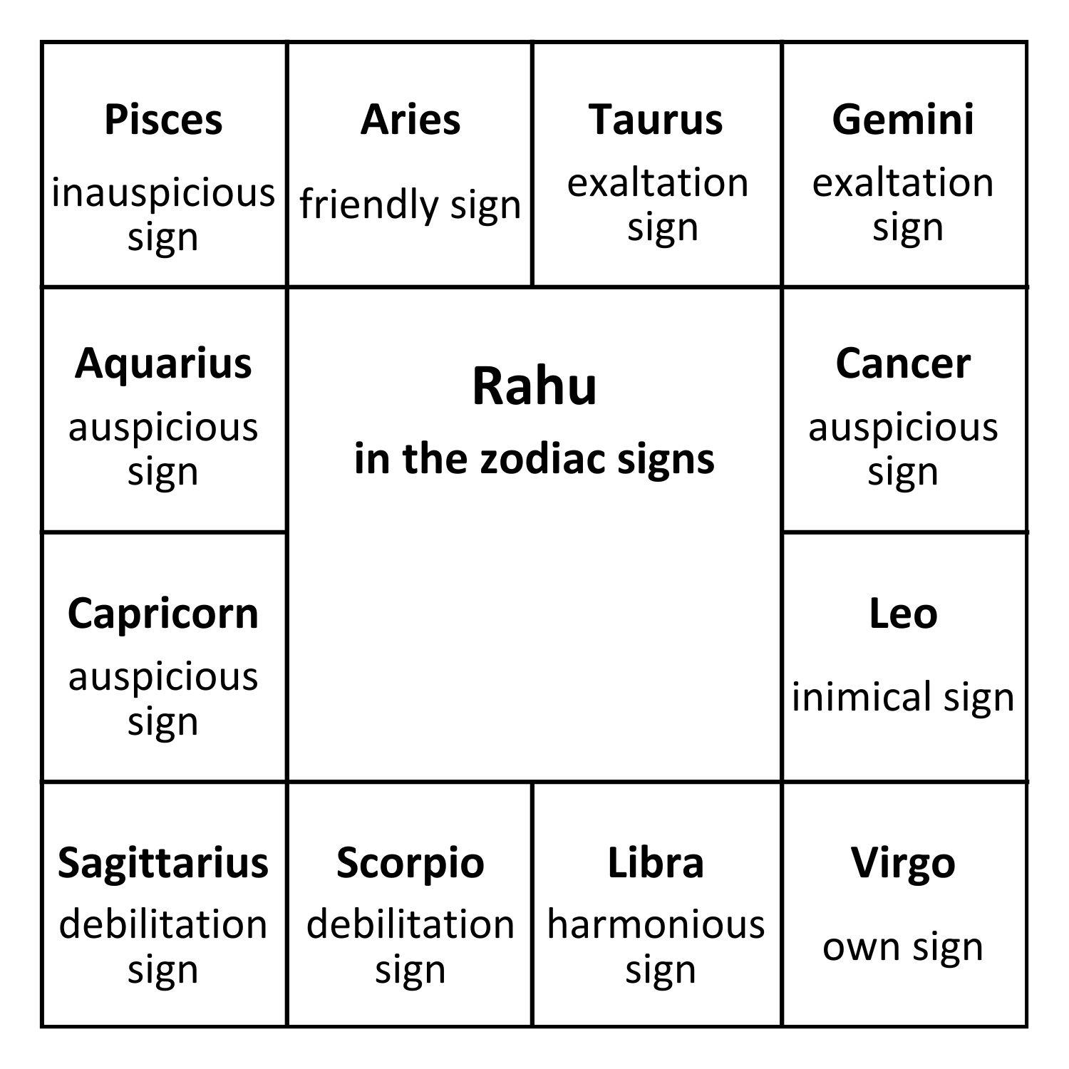 The most favorable interactions of Rahu occur with Jupiter, the Moon, Venus, and Mercury. The least favorable interactions occur with the Sun, Saturn, and Mars.