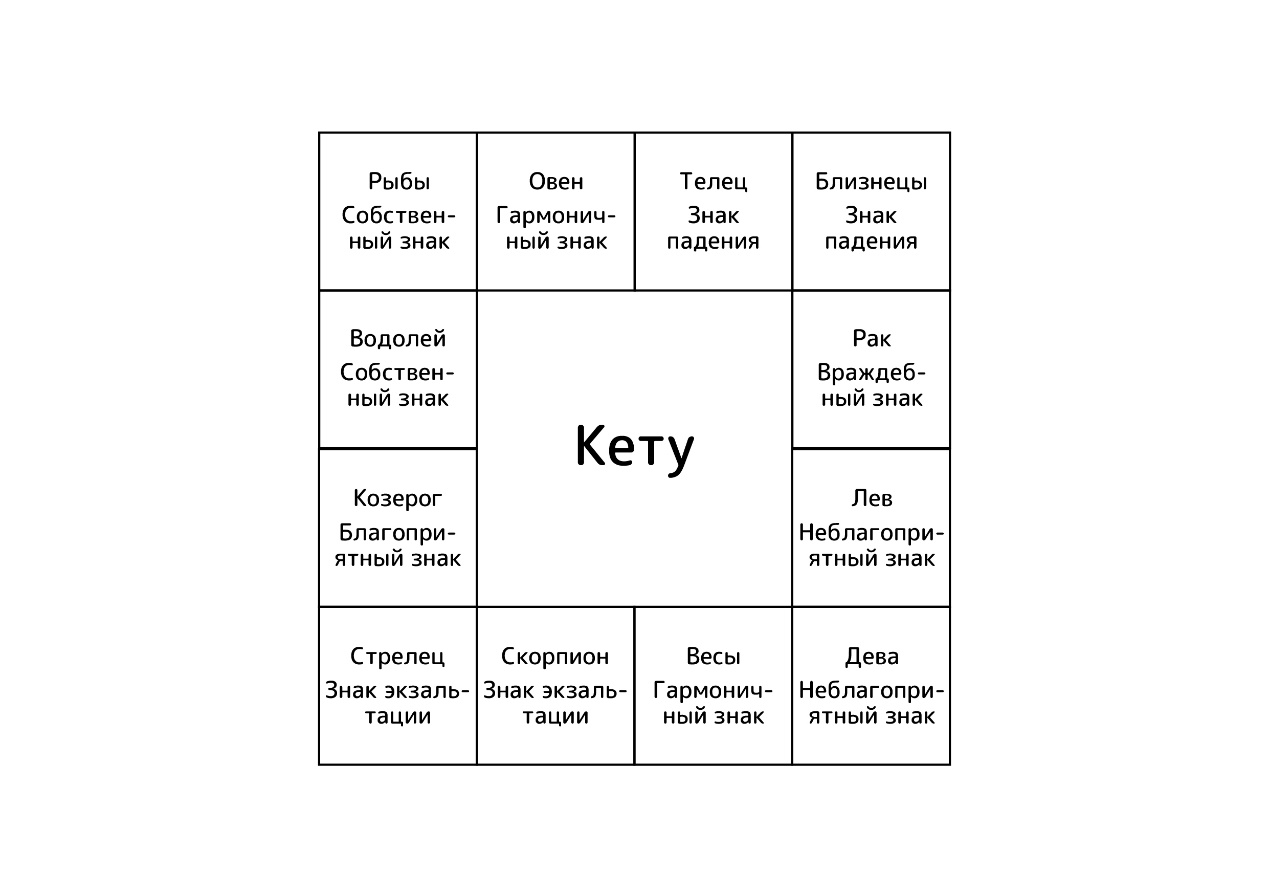 Ниже на рисунках есть информация по поводу того, как проявляются Раху и Кету в разных знаках. Мнения астрологов не всегда однозначны на этот счёт. Кармические узлы всегда дают иллюзии, поэтому даже в благоприятном месте могут негативно влиять на живые показатели гороскопа, портить отношения, кого-то или что-то отнимать, часто для того, чтобы человек развивался, двигался туда, куда нужно.