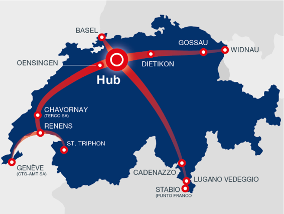 Die Kunden des SGVs, die sogenannten Verlader, werden dabei entweder über private Anschlussgleise (ca. 1`500), oder öffentliche Verladeanlagen und KV-Umschlaganlagen (ca. 200) an diesen angeschlossen.23 Zuerst werden die Güterwagen aus den Anschlussgleisen in den Teambahnhöfen gesammelt und zu Zügen zusammengestellt. Von dort aus werden sie zu den Rangierbahnhöfen (z. B. Limmattal) gefahren, wo sie nach Bestimmungsort neu formiert werden. In der Zielregion verläuft der Prozess in umgekehrter Reihenfolge bis zum Anschlussgleis.