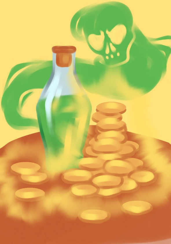 Правый отыскал книгу ведьмы и приготовил смертоносный яд. Затем он зашёл в разорённую сокровищницу и отыскал там последний кошель золота. Влив яд в кошель, он отправился в город.