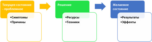 – Ну и куда решение направлено? К желаемому состоянию. Это три. А здесь у нас что вырисовывается? А вырисовываются у нас уже и результаты, и эффекты.
