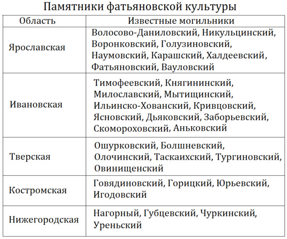 Постепенно, фатьяновские племена заняли почти всю центральную часть европейской территории России: на западе граница доходила до Псковского озера, на востоке – до Камы и Вятки, на юго-западе – до Десны и верховьев Оки, на юго-востоке проходила по Суре и Средней Волге.