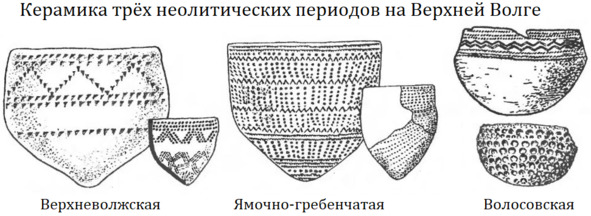 Верхневолжская культура, датируемая VI—III тыс. до н. э. сформировалась на основе мезолитической бутовской культуры, её называют субнеолитической, т. е. население ВВК не перешло к сельскому хозяйству, в отличие от юго-восточных культур неолита, а занимались собирательством, охотой и рыболовством.