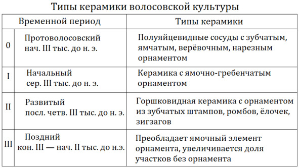 На позднем этапе неолита и уже в эпоху энеолита в IV – III тыс. до н. э. распространяется новая культура, получившая название по стоянке, открытой у деревни Волосово в Нижегородской области. Ареал волосовской культуры совпадает с границами верхневолжской культуры, происхождение точно не установлено, возможно, судя по нахождению янтаря в мужских погребениях и толчённой раковины в керамическом тесте, её носители пришли с территории Восточной Прибалтики.