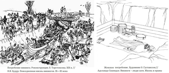 Что касается ладейных захоронений викингов, они известны на территории Руси исключительно в местах проживания скандинавов (Старая Ладога, Усть-Рыбежна, Гнездово, Шестовицы, Тимерево). На Северо-Западе Руси наиболее крупными являются погребения из Приладожья Усть-Рыбежна, Калманиеми 1, Плакун 11, они типично скандинавские – кремация на стороне, перекрытие ладьей, следы погребального костра.