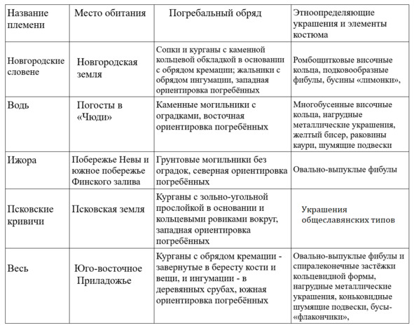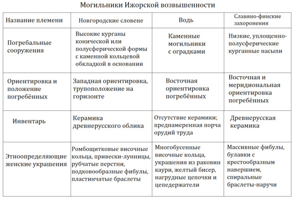1. Захоронения новгородских словен, которые занимают южную и центральную части Ижорского плато;
