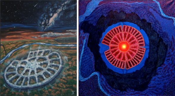 1. Аркаим – небесное колесо. Художник Галина Андреева-Сапфиро. 2. Аркаим сияющий. Художник Лола Лонли