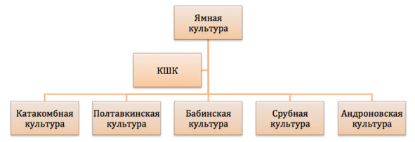 Далее рассмотрим археологические культуры и КИО, которые, по мнению большинства учёных, сложились под влиянием древнеямной КИО, но вопрос остаётся спорным.