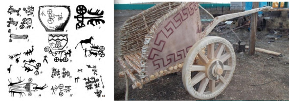 1. Изображения колесниц на андроновском и срубном сосудах и петроглифах Казахстана, Памира, Индии и Тувы // Кузьмина Е. Е. Откуда пришли индоарии, 1994 г. 2. Реконструкция колесницы по древним технологиям без единого гвоздя. // Государственный историко-культурный заповедник «Аркаим», 2017 г.