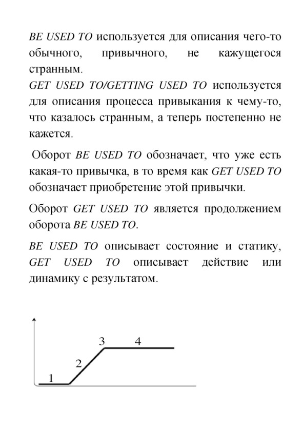 – BE USED TO может использоваться только в группе времён Simple, тогда как GET USED TO в любой временной форме по ситуации