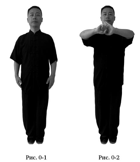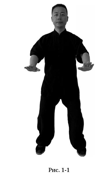 Стойка бинбу: встать ровно, ноги вместе, стопы неплотно прижаты друг к другу, макушка тянется вверх, руки естественно опущены по бокам, ладони касаются бёдер (рис. 0–1).