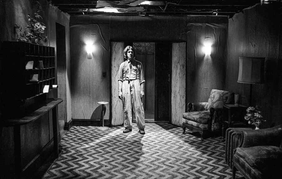Линч на съемочной площадке в холле квартиры Генри Спенсера из «Головы-ластика», 1972. Фотограф: Катрин Колсон.