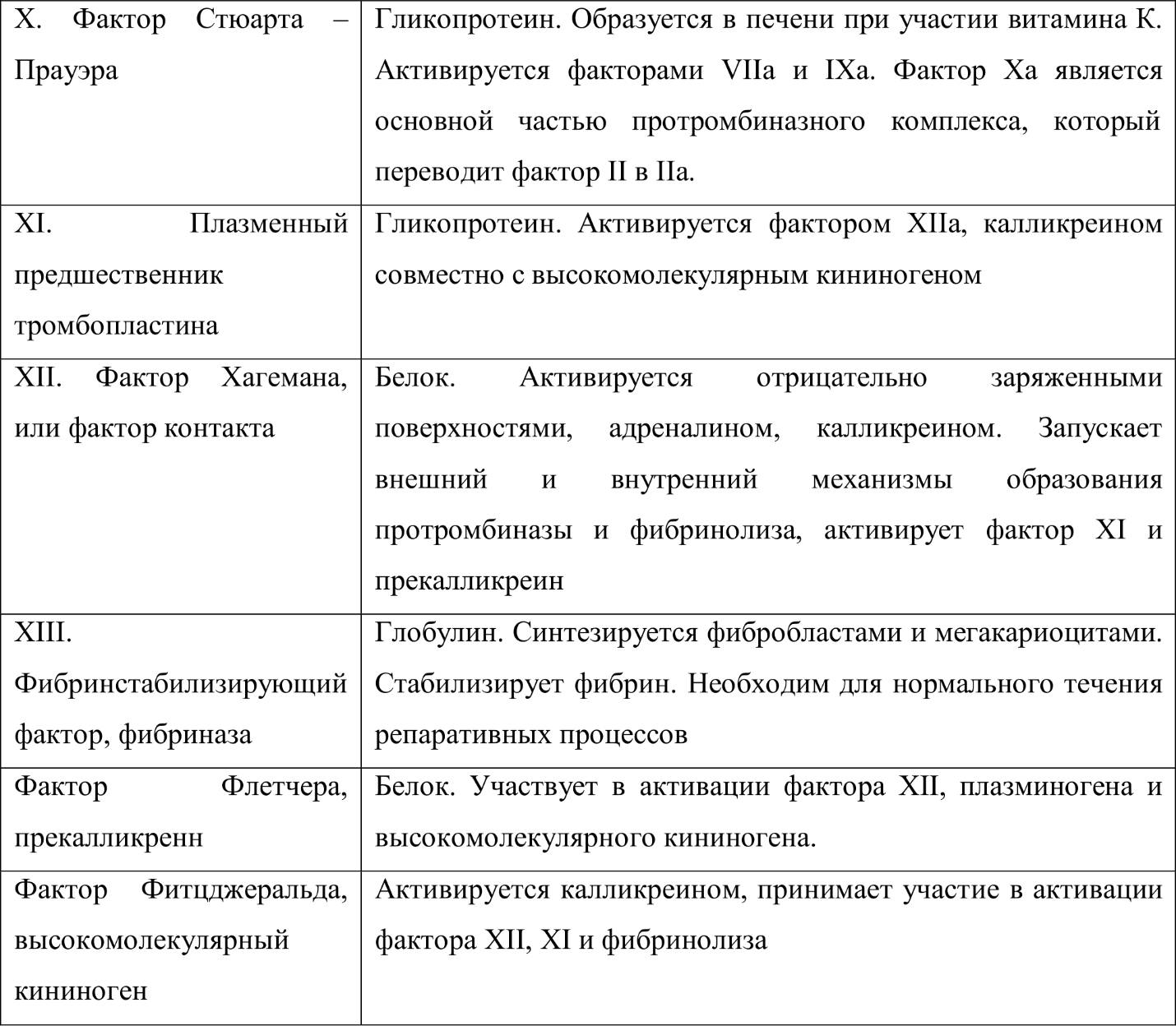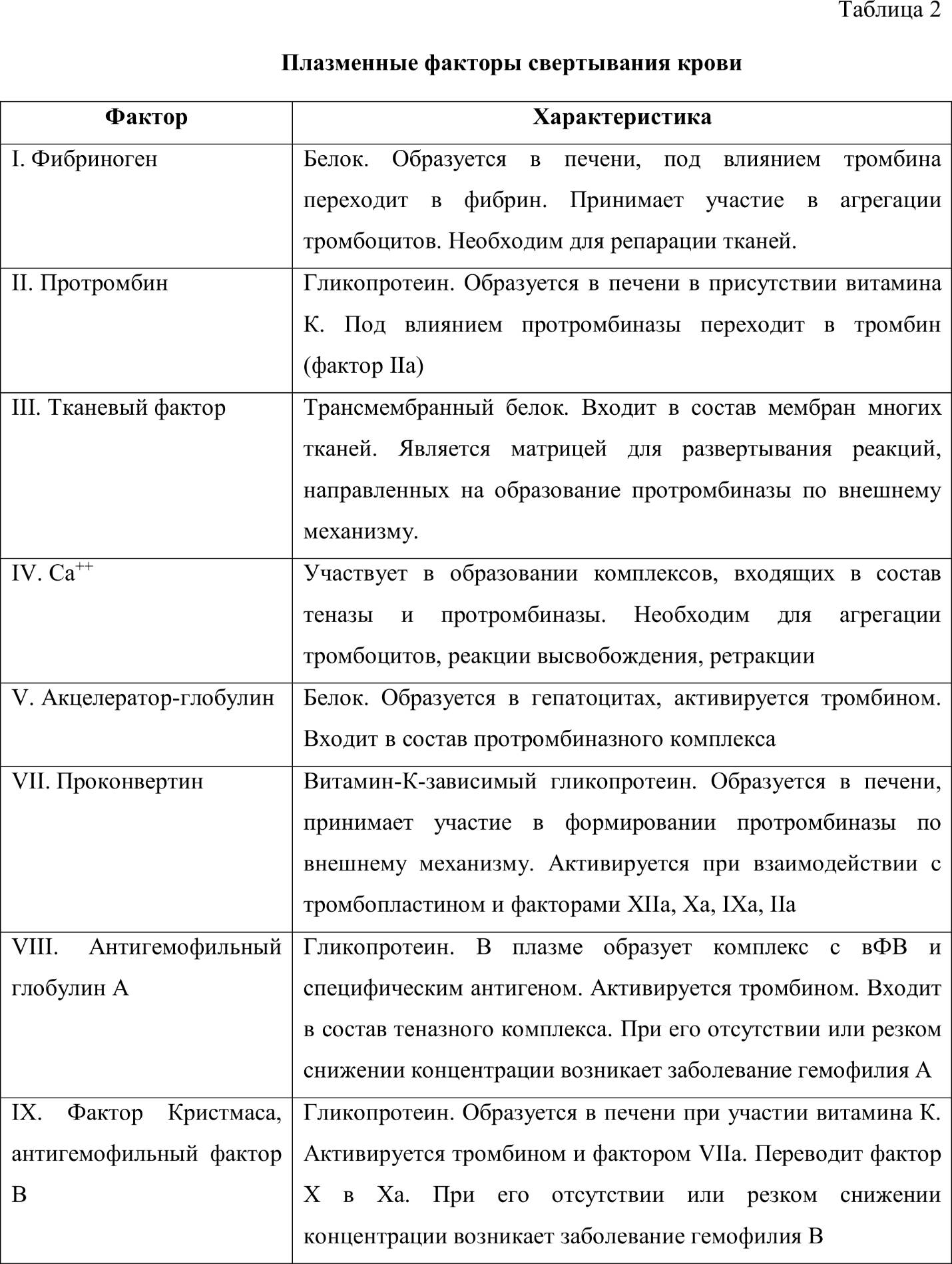 По решению международного комитета факторы свертывания обозначаются римскими цифрами в порядке хронологии их открытия (таблица 2).