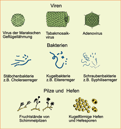 Die meisten Bakterien sind harmlos, einige Ar-ten können jedoch schwere Krankheiten bewir-ken: Typhus, Cholera, Wundstarrkrampf und vie-le andere.
