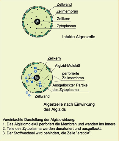 Wirkung von Algiziden auf die Algenzelle