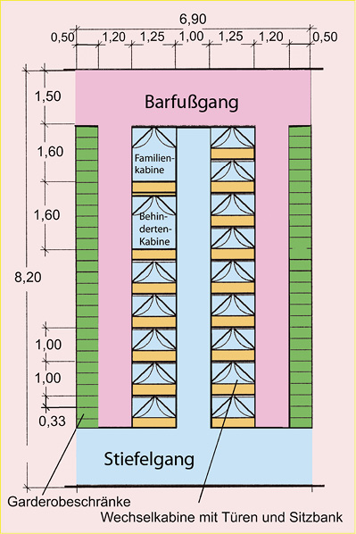 folgende Aufteilungen nach den Richtlinien für den Bäderbau dienen.