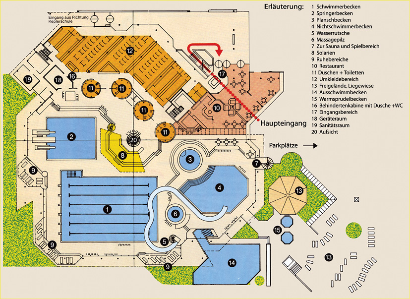 Räumlichkeiten und Einrichtungen eines Freizeitbades