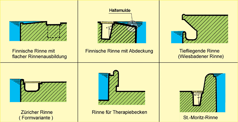 Rinnensysteme nach den Richtlinien für den Bäderbau und Herstellerangaben