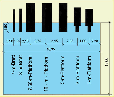 1-m- u. 3-m-Brett, 1-m-, 3-m-, 5-m-, 7,5-m-, 10-m-Plattform