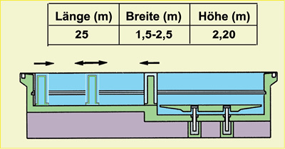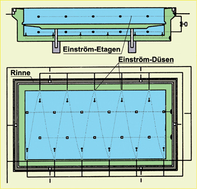 Gute Durchströmung eines Hubbodenbe-ckens mittels „Strahlenturbulenz“ (A.f.B.W. GmbH & Co, 30952 Empelde)