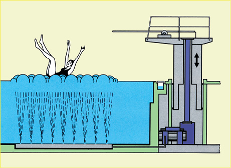 Höhenverstellbarer Betonturm (1...5 m) mit Luftkis-senerzeugung für weiche Trainingssprünge (Anlagenbau für Bädertechnik GmbH & Co. Schwimmbad - Service KG, 30952 Empelde)