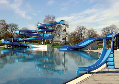 Anordnung einer Riesenrutsche in einem Freibad (Roigk, Gevelsberg)