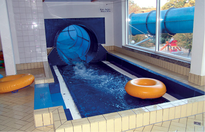 Anordnung einer Riesenrutsche in einem Freizeithallenbad (Roigk, Gevelsberg)