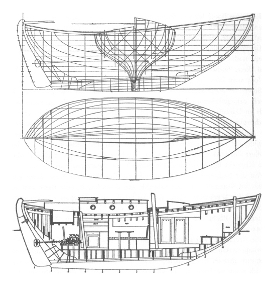 Segelriß 1:140 (hier ohne den später hinzugekommenen Klüverbaum).