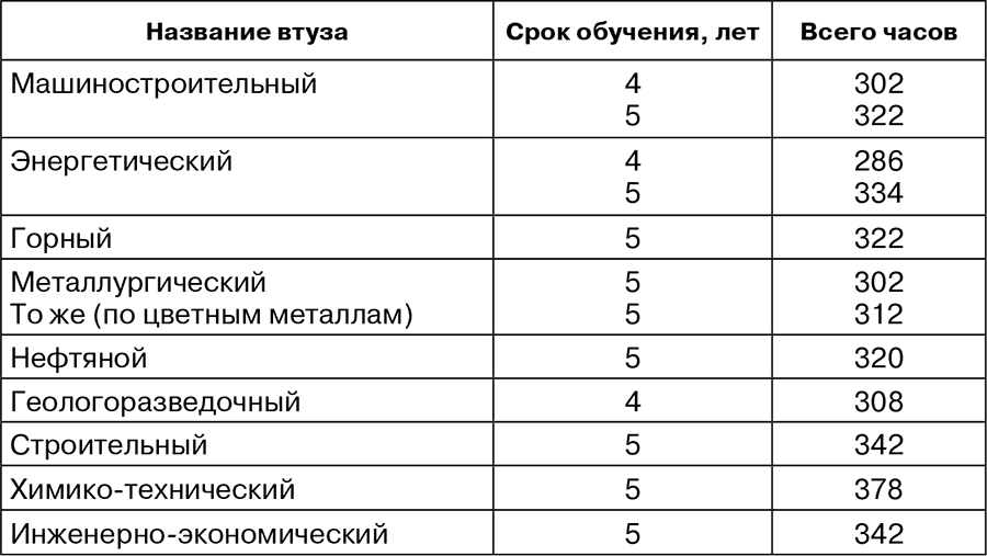 Таблица 1. Распределение часов по физкультуре во втузах различных типов (программа в ред. 1933 г.)[14]