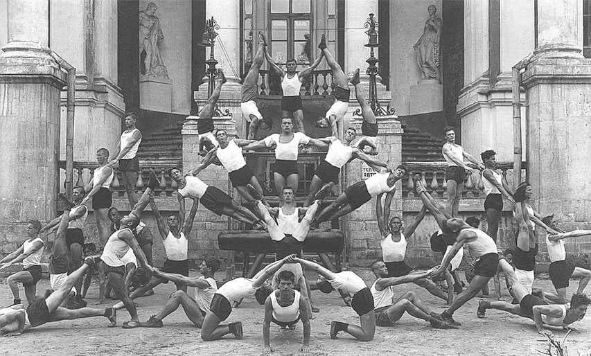Выступление гимнастов Государственного института физической культуры на спортивном празднике