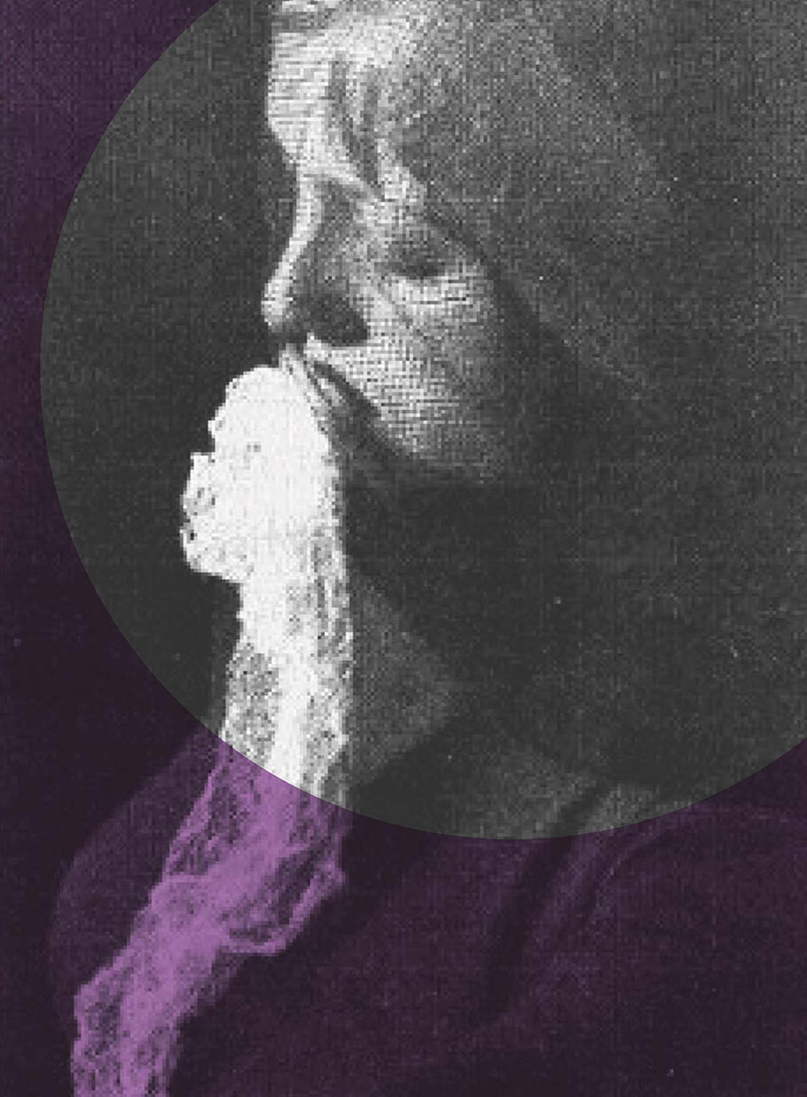 Ein Geisterfoto, das eine Ektoplasma-Erscheinung zeigt. Es wurde bei Rotlicht aufgenommen und erscheint durch die Bewegungen des Mediums unscharf. Hier zu sehen: Das Medium Stanislawa P., das auch Albert von Schrenck-Notzing, Erzsis Spiritismus-Sachverständiger, bei „Sitzungen“ beschäftigte. Ob die Erscheinung „echt“ ist – darüber scheiden sich die Geister.