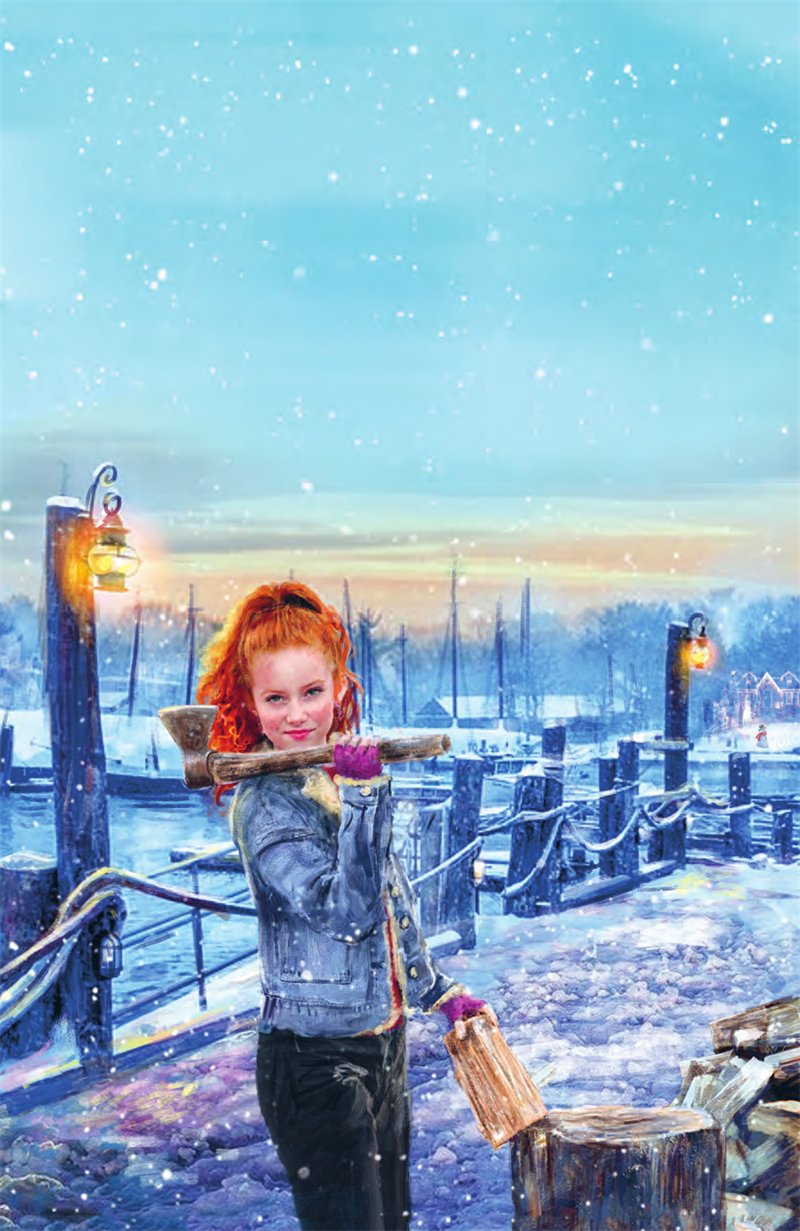 Девочка отвлеклась от дров и подняла глаза. У неё были сверкающие зелёные глаза, усыпанное веснушками лицо и пышные рыжие кудри. Одета она была в дырявые чёрные рабочие штаны и поношенную джинсовую куртку на подкладке. На руках, сжимавших топор, были грязные розовые перчатки с обрезанными пальцами.