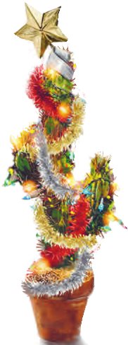 На нём были три разноцветные гирлянды красного, серебряного и золотого цветов, обёрнутые вокруг колючего тела растения, а к верхушке изолентой была примотана звезда.