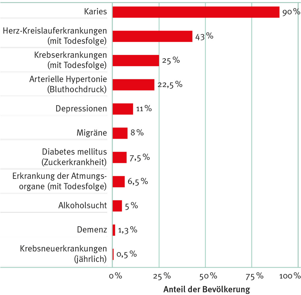 Anteil der Menschen in Deutschland, die an den aufgeführten Volkskrankheiten leiden (Quelle: Robert-Koch-Institut, © Statista 2010)