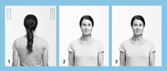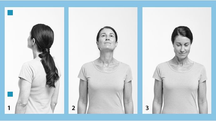 Следующим шагом тренировки системы равновесия являются движения «да-да», которые довольно просто воздействуют на передний и задний каналы органа равновесия. Благодаря особенностям анатомии и расположения каналов органа равновесия (см. рис. на стр. 65), передний и задний каналы активируются при выполнении наклонных движений головы назад-вперед. Выполнение этого движения труднее и непривычнее, чем движения «нет-нет».
